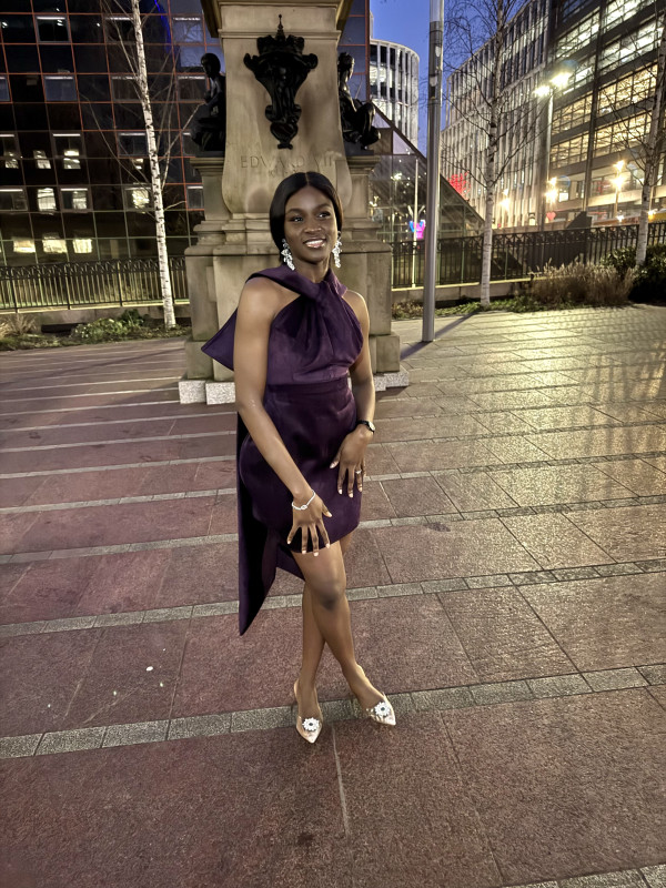 The silhouette walks the line between softness and precision — a twist, a curve, a sculpted intention that brings the piece to life. The halter detail creates a striking frame for the shoulders, while the back reveals an unexpected flourish: a bold bow that feels like the final stroke of a beautifully wrapped secret. It’s no decor, it’s attitude, captured in fabric.
